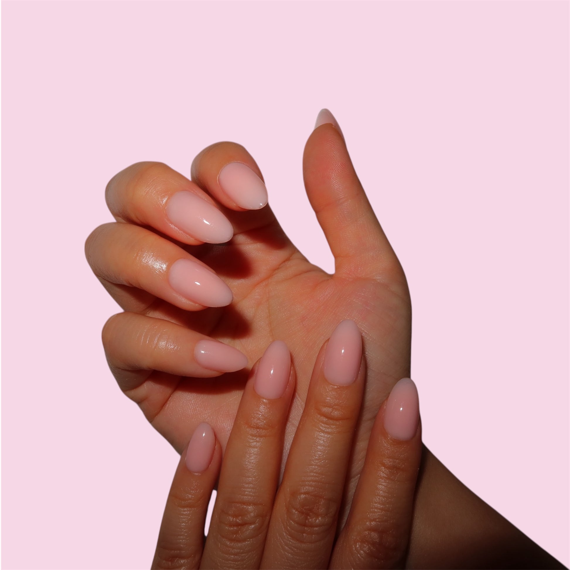 Salon Handcrafted pink milky nail with builder gel finish.